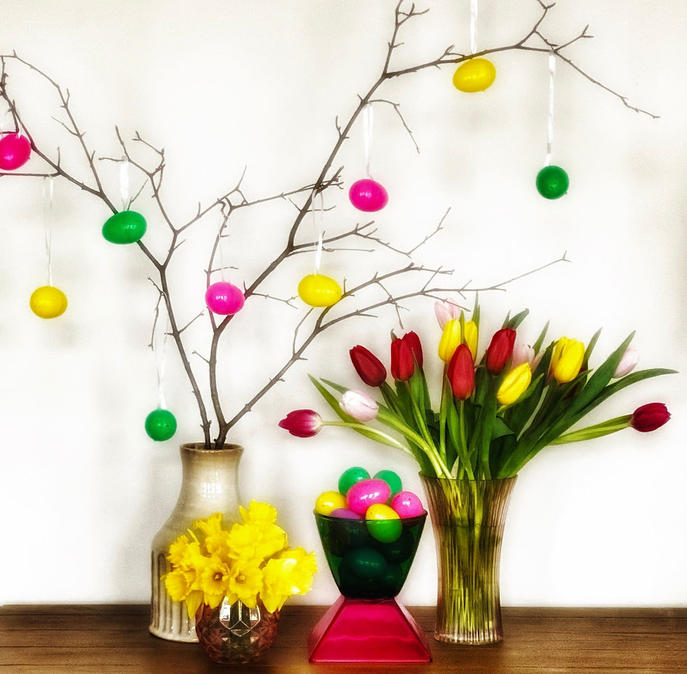 Plastic eggs filled with a few candies closed over a ribbon - fast, festive and fun!